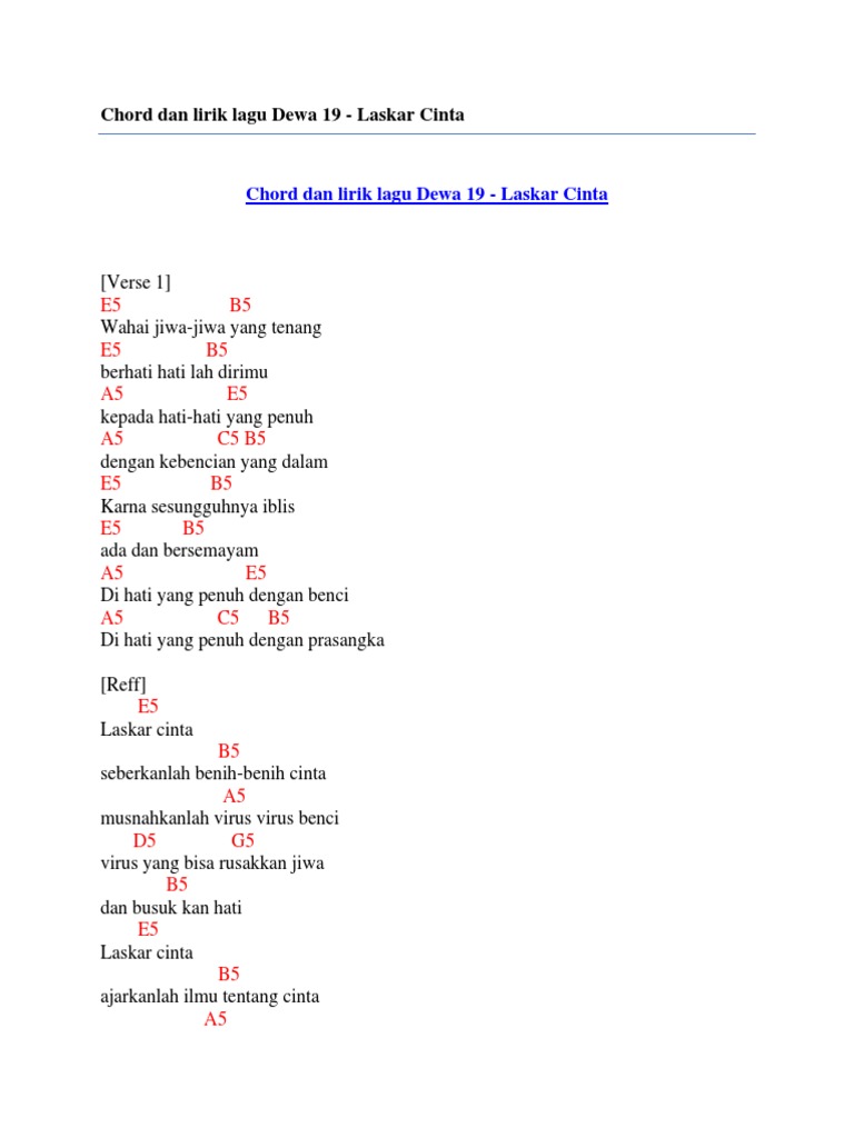 Chord Dan Lirik Lagu Dewa 19 Laskar Cinta Pdf